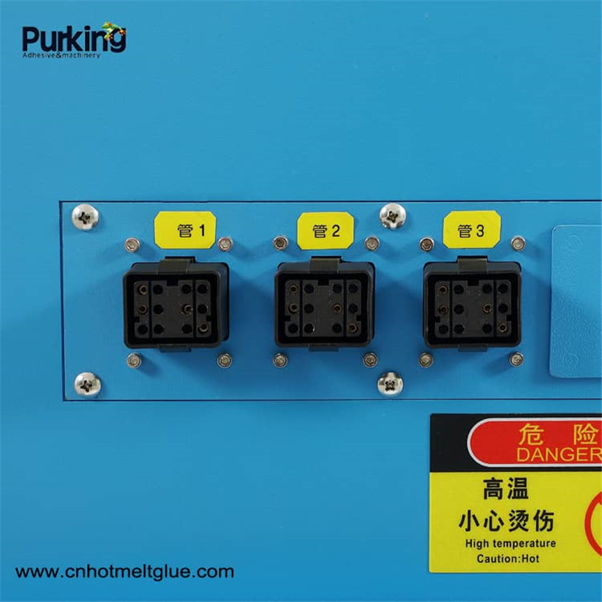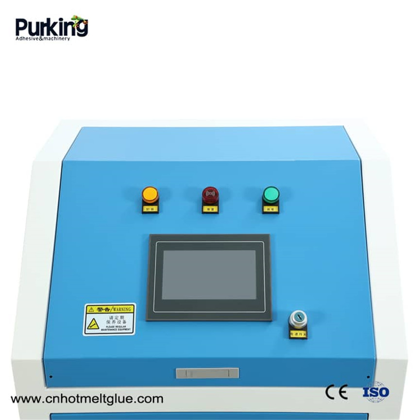 2. Unser Schmelzklebstoffschmelzgerät verwendet ein Präzisionsfiltergerät, um Verunreinigungen zu entfernen und eine Verstopfung der Düsen zu verhindern. Rahmenartige Rumpfstruktur und zu öffnende Tür des Steuerkabinetts, einfache und schnelle Installation und Wartung; humanisierte Bodenradvorrichtung, flexible Bewegung, Verriegelungsfunktion ist sicherer und zuverlässiger; Humanisiertes Design des Bedienfelds, einfach zu bedienen.