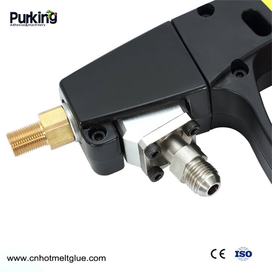 Die THG Handsprühpistole ist flexibel und zum einfachen Leimen und Laminieren geeignet. Kann Düsen mit unterschiedlichen Spezifikationen von 0,4-1,0 mm Öffnung liefern, um das Problem des sogar manuellen Sprühens zu lösen. Das Gelenk kann um 360 Grad gedreht werden, um ein Verdrehen des Schlauchs zu vermeiden. Die Spiralspritzpistolen werden seit vielen Jahren in ASEAN und EU gut verkauft und von Kunden hoch gelobt.